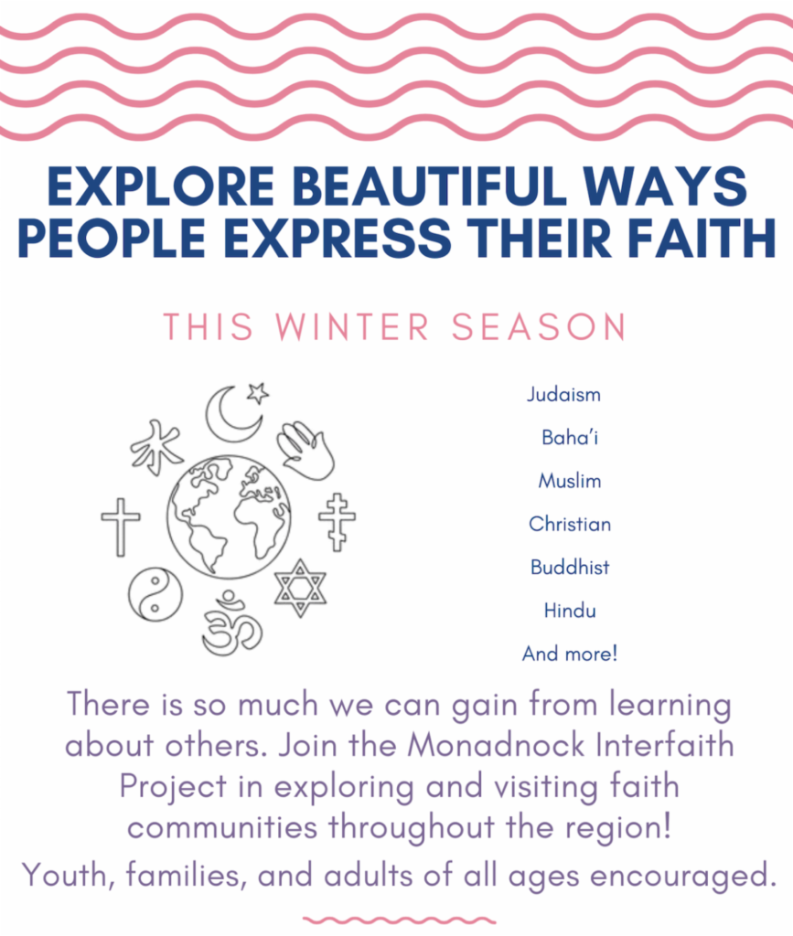 Our MIP intern, Alaria Clauss, is organizing family visits to local faith communities to build interfaith understanding in the Monadnock region.